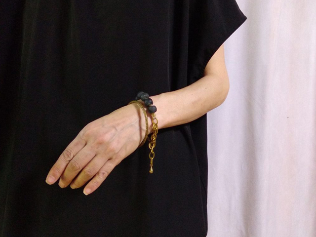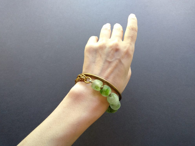 真鍮製のバングルなどと合わせて重ねづけするのも素敵です。