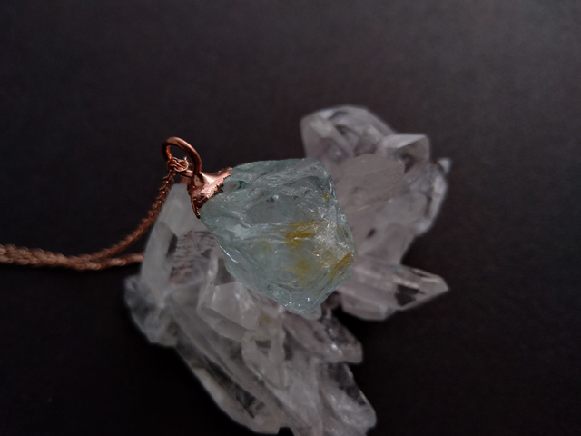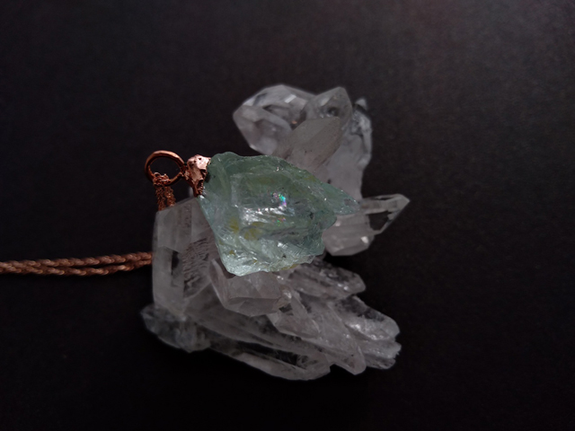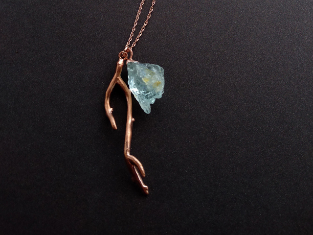 | 【素材】 | ・アクアマリン:ブラジル産 約18×29㎜(カン含む) エレクトロフォーミング加工:銅メッキ ・ウミウチワ:高知県産 約60㎜(カン含む) エレクトロフォーミング加工:銅メッキ ・ネックレス:14KGF(ピンクゴールフィールド) 約45㎝ ・アジャスター:14KGF(ピンクゴールフィールド) 約6㎝ |